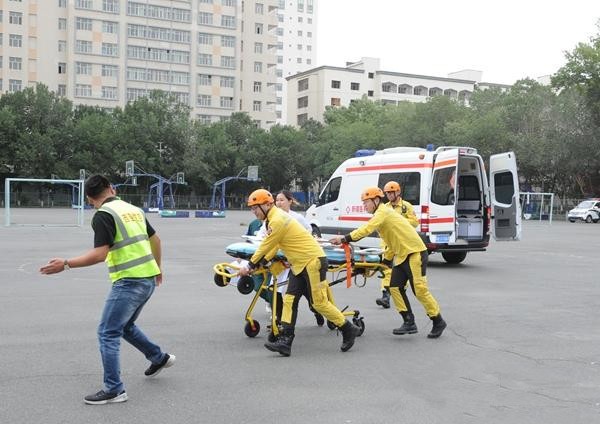 此次緊急救援活動是全疆首次以直升機作為工具的救援活動,演練中模擬山區游客登山時突發意外事故導致左腿骨折并拌大量出血現象,需盡快送往醫院做進一步的檢查治療,因交通堵塞,為爭取在最短的時間內得到有效救助,選擇通過直升機運送傷員至新疆醫科大學第一附屬醫院接收系統治療。