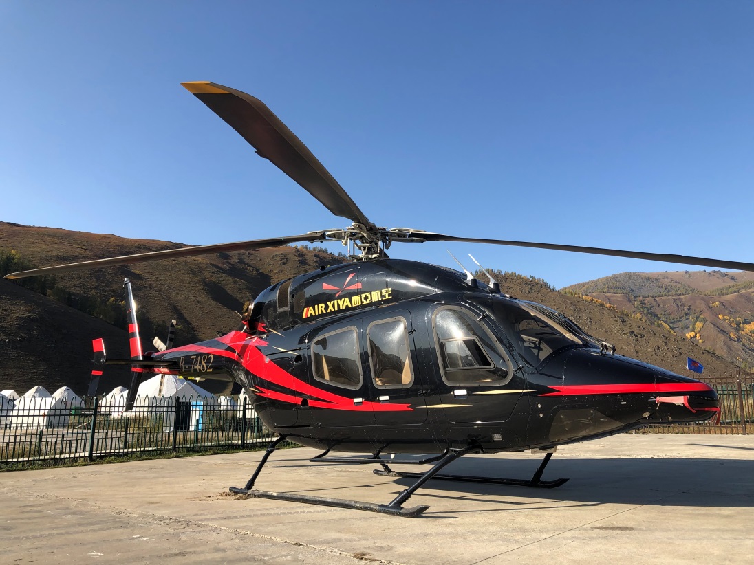 2019年9月19日,由西亞直升機航空有限公司開展的喀納斯地區秋季低空旅游項目在阿勒泰喀納斯開展航線測試。此次喀納斯秋季低空旅游項目開通的航線選用具有超高性能且適合在極端天氣飛行的Bell429機型執飛。